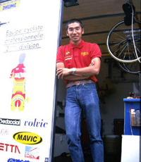 9月17日、北フランスで行われたGPディズベルグを観に行ってきた。このレースは、カテゴリー2のレースで、チミル、ヴァンペテヘンなどワンデーレースを得意とする選手がわんさか。そんな中に混じって、「いましたぁ!」ベッソンショッスールの水谷選手。チームカーの中でワイワイ、チームメイトとフランス語で会話していた。今日はメカニシャンの小松君も来ていた。3人で世間話をしたあと、私はこのレースのもう一人の主役、トニステイナーの三船選手を探しにぶらぶらと歩く。その途中で、見覚えのある顔発見。なんと、北の地獄パリ〜ルーベで2年連続優勝した男、デュクロ・ラサールが来ていた。衛星放送スポーツチャンネルのコメンテーターとして来ているらしい。