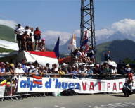 今年のラルプデュエズには、5キロ手前から柵がはられていて、一昨年私が見た時のような観客の人垣は見ることが出来きず、残念。安全対策の為とはいえ、盛りあがりがかけてしまって、ラルプデュエズの楽しさが、半減した感じがしました。今年は、イタリア人ファンが少なかったのですが、そのかわり、オレンジの服を着たり、カツラをかぶったオランダ人ファンがかなり増えていました。
