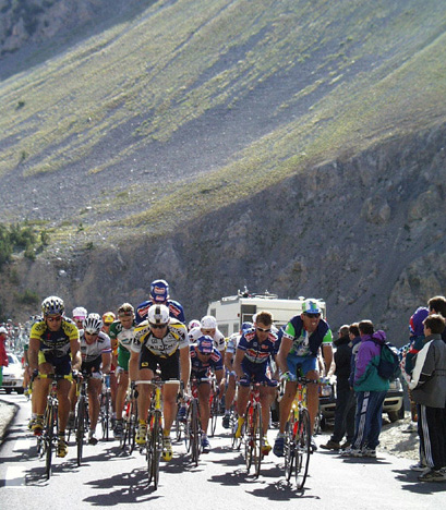レースの最後尾を大人数で走るグルペット集団。 この集団に遅れると、タイムアウトになる可能性大。 ゴール目指してみんな必死。 先頭が、ジャラベールの弟ニコラ(オンセ), うしろがルス(ボンジュール)かな?グーゴ(CA) クネーブン(ファームフリット)ですね。あとはよう分かりません。 バックが壮大でええでしょ。