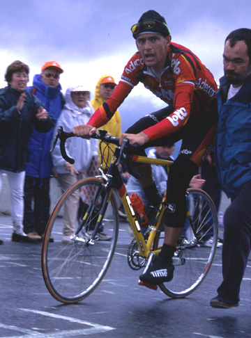 第10ステージ、雨のオタカムにて ジャッキー・デュランらしく、尻押ししてもらってます。 おじさん、飛んでる、飛んでる〜!