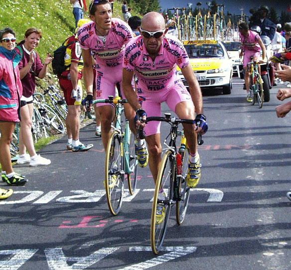 2000年ツール最後のパンターニの姿です。さて、どこでしょう。 分かった人はツールマニア。ジュープラン峠ですね。 右に見える4つの手。これは日本から観戦に来きていた人たちです。 こんなかたちですみません。 だから「なんじゃ、この日本人の集団は?」と横を向いてるんです。 じつは奥が深いこの1枚。