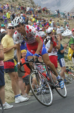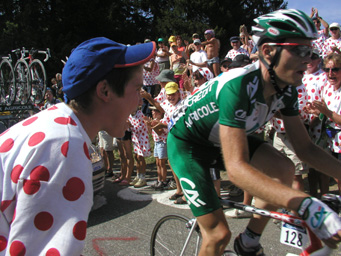 第9ステージのイゾアール峠、山岳ポイントを 取るために頂上手前でビランクがアタックした所。 |